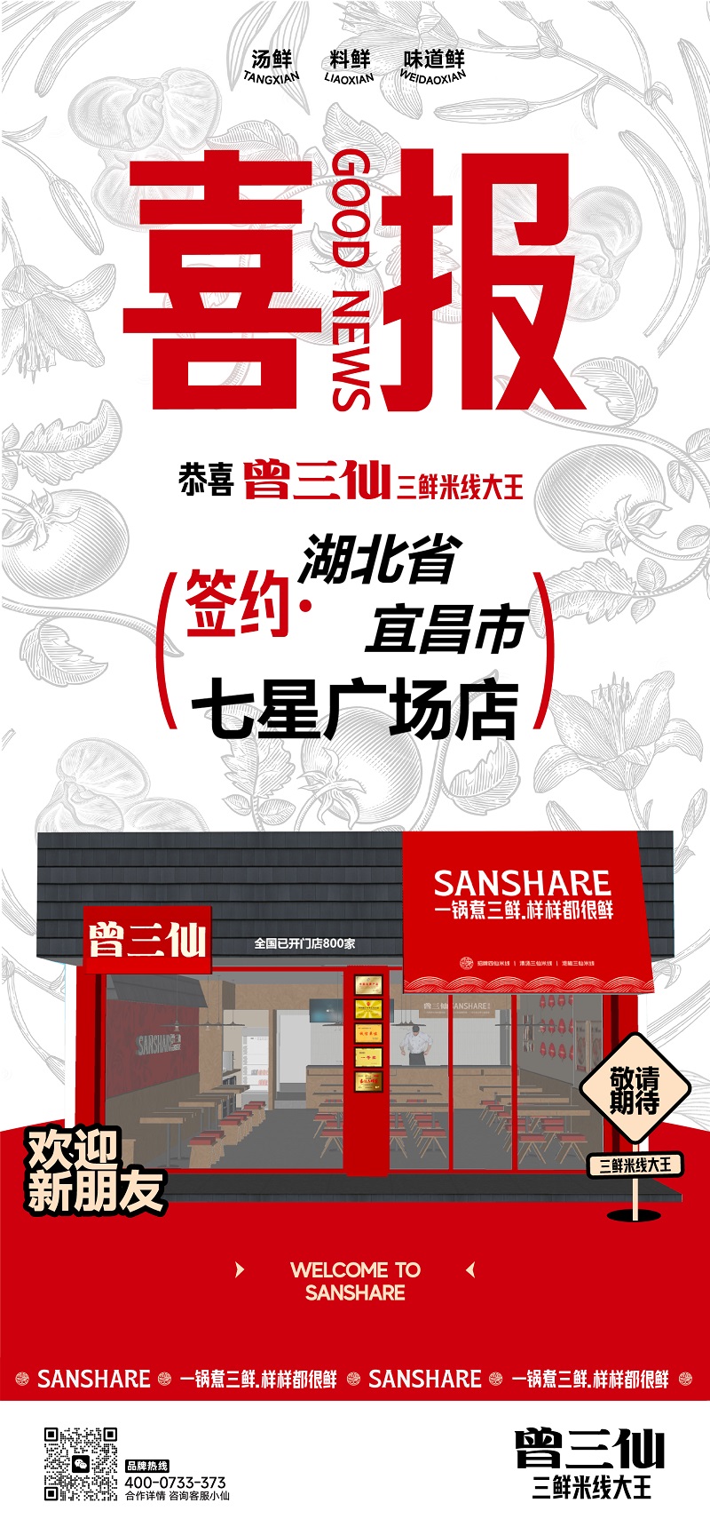 曾三仙米线·签约喜报来袭 ㊗恭贺湖北省宜昌市 七星广场店