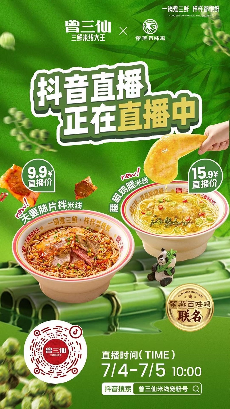 曾三仙✖紫燕百味鸡联名 速速集合正在直播中